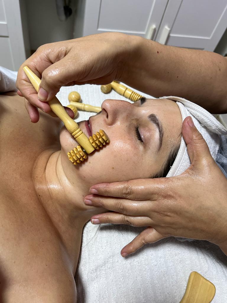 Sábado 17 de diciembre. Maderoterapia facial. Reafirmante, drenante, antiarrugas, relajante. De 16h a 20h. Presencial. Mínimo 2 alumnos, máximo 8.